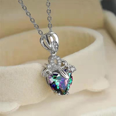 Collana con ciondolo a forma di cuore, collana con ciondolo semplice di diamanti