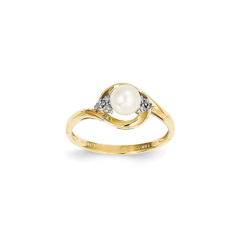 Anello in oro giallo 14k con diamanti lucidati e perle coltivate d'acqua dolce, misura 7,00