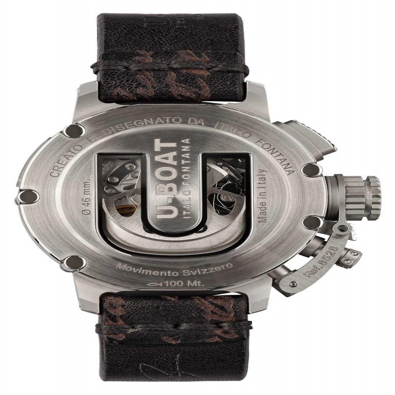 Orologio da uomo U-Boot. Cassa in acciaio inossidabile argentato. Quadrante nero. Movimento automatico. Impermeabile fino a 10 metri. 8528.